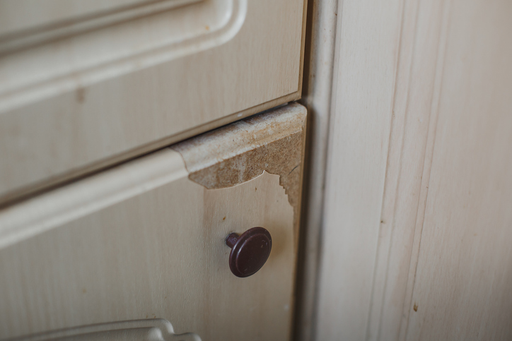 One of the most common reasons refinishing fails is water damage on MDF cabinet doors.